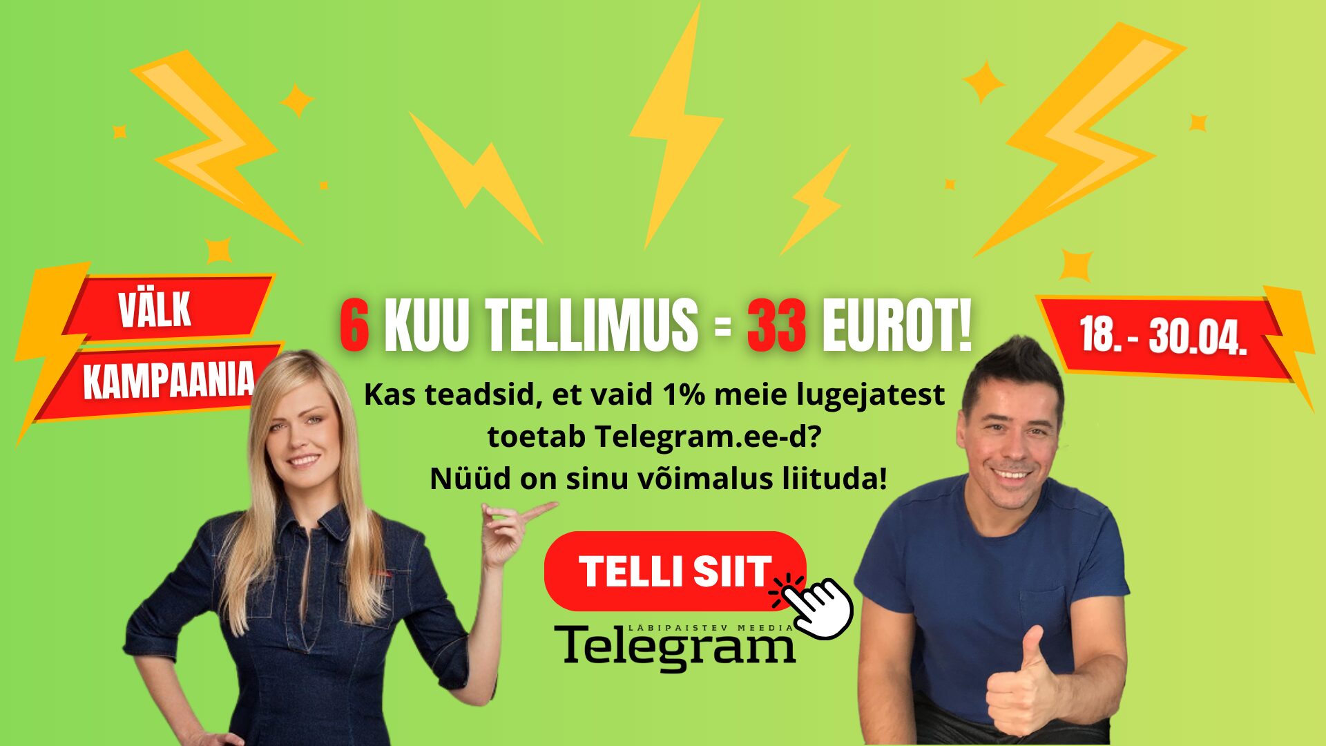 Panustad Telegram.ee jätkumisse ja annad toimetusele mõista, et meie töö on sinu jaoks oluline ja väärtustatud.