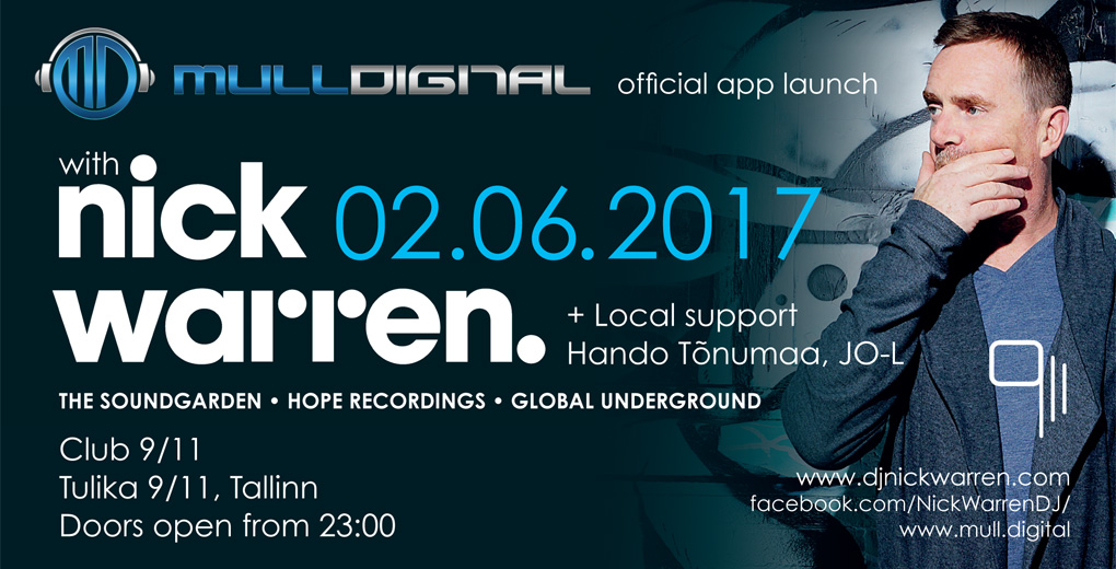 Hea uudis underground house´i ja techno sõpradele! Eile esitleti Telliskivi Loomelinnaku sündmusteruumis Lift99 uut pleier äppi MULL Digital, mille abil saab 24/7 kuulata hoolikalt valitud tantsumuusikat ja Eestis salvestatud DJ-de mikse. MULLi ametlik avapidu toimub aga täna õhtul Tallinna klubis 9/11, kus esineb üle 30 aasta DJ ametit pidanud superstaar Nick Warren, peo otseülekannet saab kuulata äppi vahendusel.