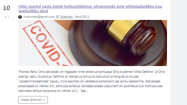 Täna hommikul võis uudiste edetabelis 10. kohal näha ka värsket Telegrami uudist: