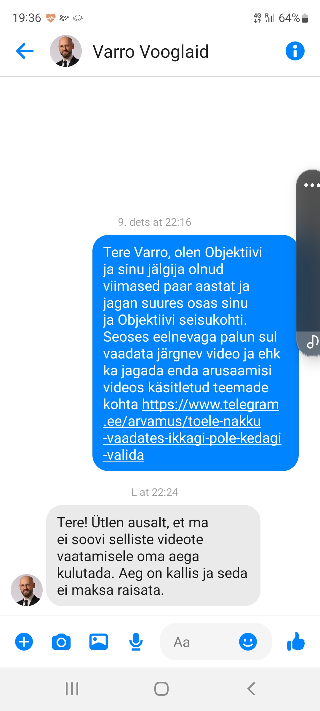 Üks Telegrami lugeja reageeris minu artiklile/videole nii: