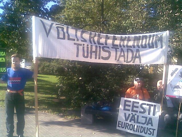 Tallinnas toimus laupäeval, 14. septembril Euroopa Liiduga liitumise referendumi 10. aastapäeval kaks meeleavaldust, mis nõudsid referendumi tulemuste tühistamist. Esimene protest toimus juba hommikul Radissoni hotelli ees, teine lõuna paiku Vabaduse väljakul. Meeleavaldustel osalejad olid seda meelt, et referendumi näol oli tegu võltshääletusega ning eestlased on samm-sammult muudetud euroimpeeriumi õigusteta pärismaalasteks.