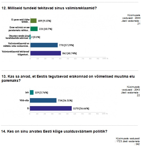 1. Umbes 50% vastas – ei tea / usaldusväärseid poliitikuid polegi olemas vms.