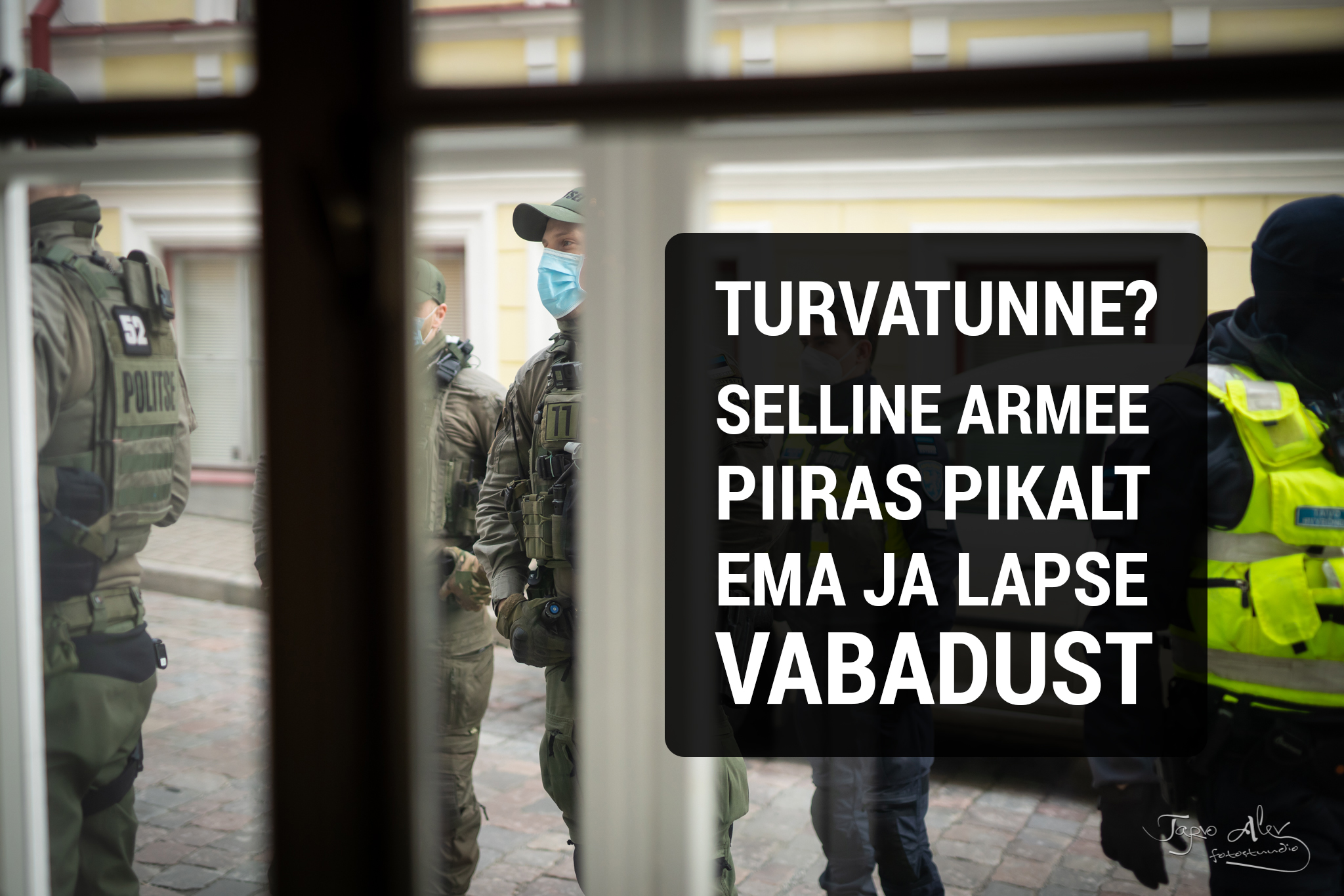 Järgmiseks sisenes ruumi kümmekond võimuesindajat – nii eriüksuse mehed, kui ka siniste kostüümidega nummerdatud härrad nagu lehmad karjas, kellele on number külge kõrvetatud. Hakati nõudma inimeste dokumente. Küsisime vastu, millise seaduse, paragrahvi ja täpse põhjuse alusel ning veel lisaks soovisime esmalt ise tuvastada, kas tegemist tõesti PPA töötajatega paludes neil esitada oma töötõendid. Suured mehed, kellel noad rinnale kinnitatud, relvad vööl, näod kaetud kaltsudega, mille taga vaid silmad vilguvad, keeldusid ega julenud end tutvustada. Minu jaoks järjekordne näide, kui hädised nad tegelikult on, sest Korrakaitseseadus kirjutab nii: