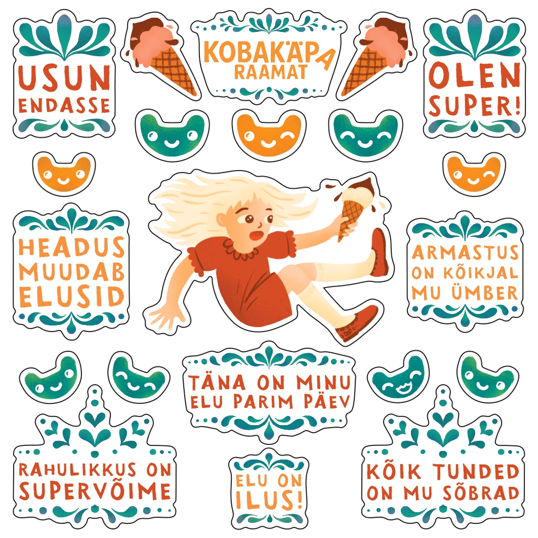 Raamatu vahelt leiad ka hea tuju kleepsud: