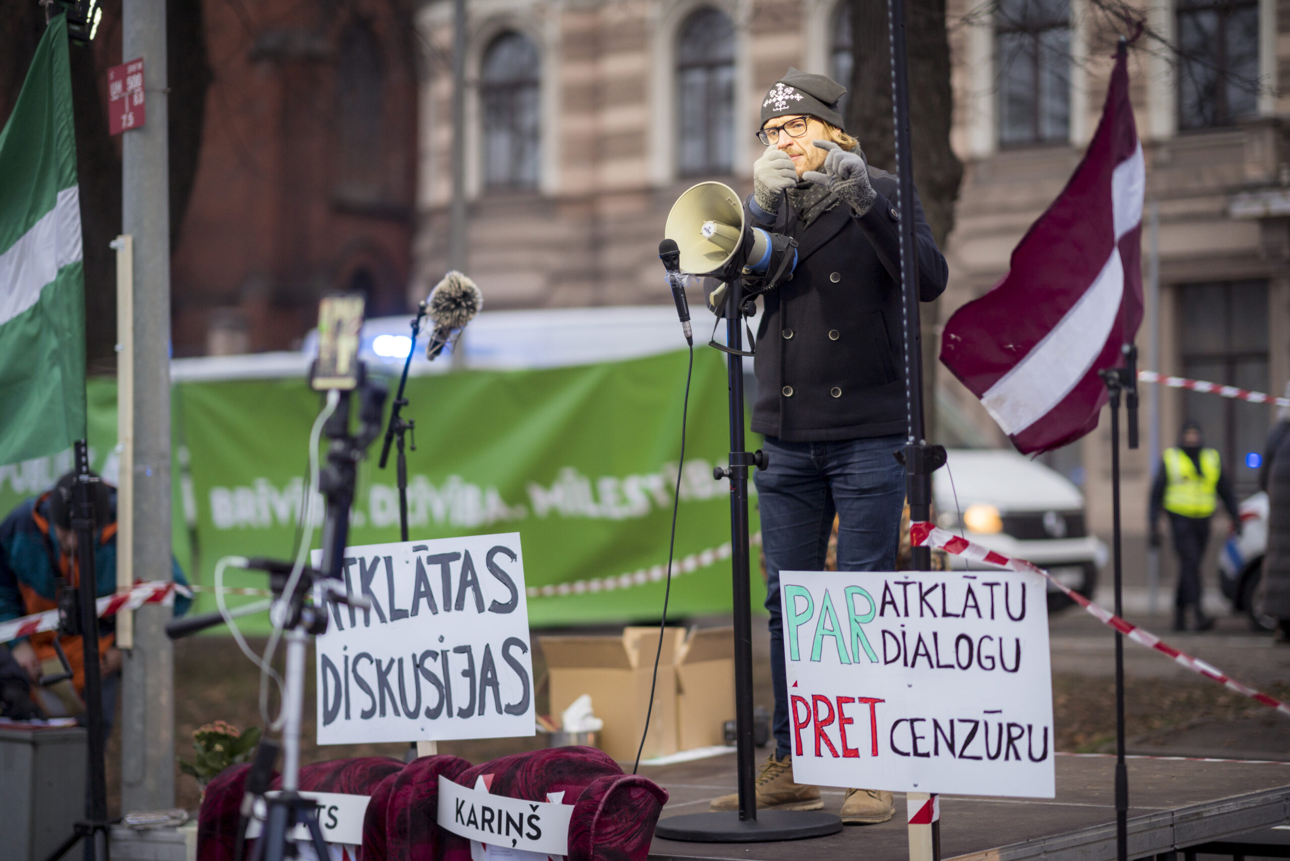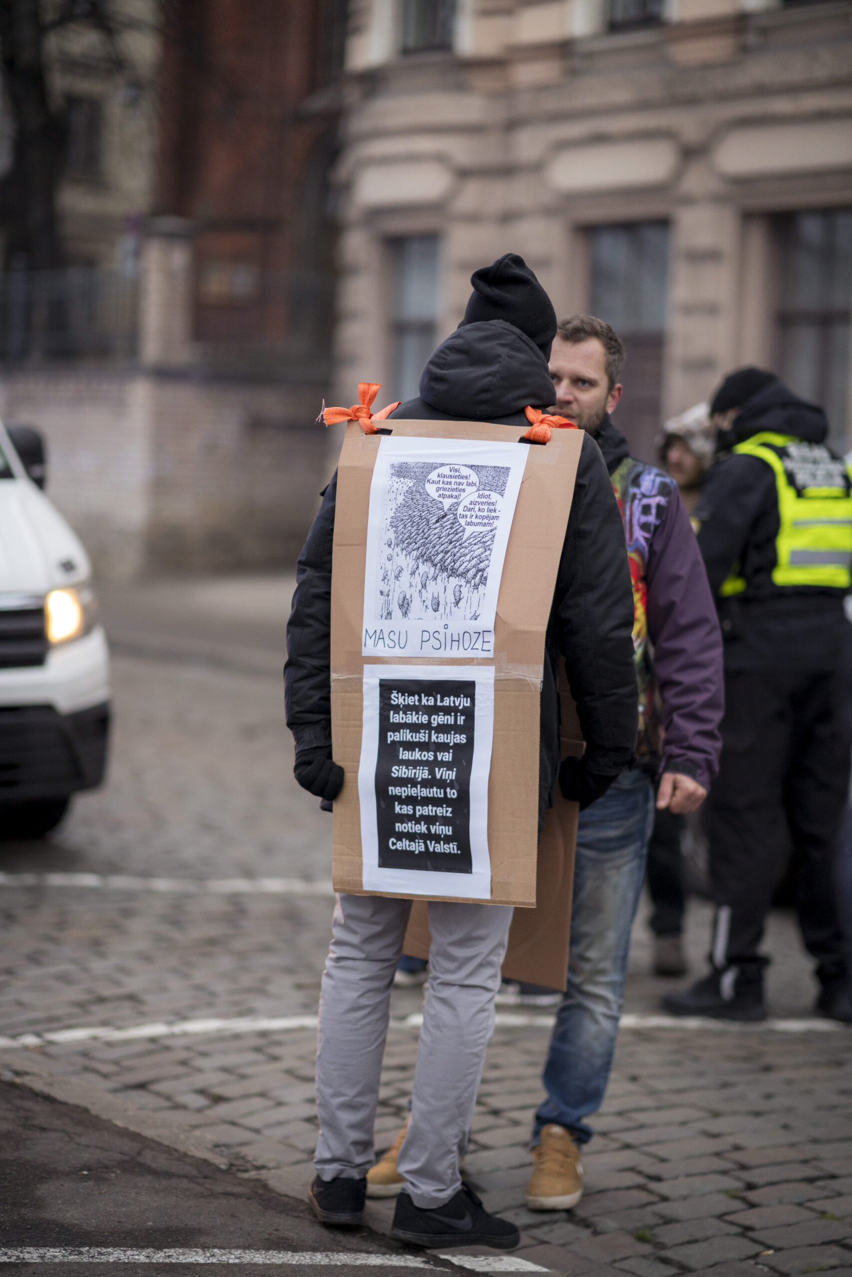 Sündmuse üks eestvedajaid, alternatiivse väljaande Mainām Pasauli (tõlkes “me muudame maailma”) toimetaja Janis Plavins kommenteeris Telegramile, et erinevalt näiteks Saksamaal toimuvast käitus Läti politsei meeleavaldajatega viisakalt, kui mitte öelda solidaarselt.