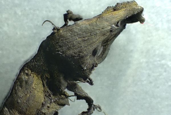 Järgneb vapustav pilk sellele, mis näib esmapilgul mikromõõtmelise juhtmena. Seda suumides näeme ülaosas mitmeid korduvaid struktuure, mis näivad olevat nanomõõtmelised juhtmeliidese ristmikud. Kogu “traat” on valmistatud korduvatest segmentidest ja selle välimine kiht on kaetud korduvate “skaalataoliste” mustritega, mis tegelikult meenutavad roomajate nahka rohkem kui midagi inimlikku.