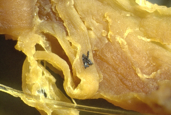 Siin on viaal nendest värsketest trombidest, mis on enne värvimist verest pestud ja konserveeritud: