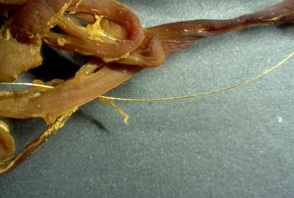 Lõpuks, see kiud ei ole lihtsalt inimese juuksed. See on tugevalt trombi küljes kinni ja kui seda prooviti eemaldada, ei rebenenud see kergesti ära. See ei ole saastumise probleem, see on trombist endast lähtuv struktuur. Kõik, mida siin näete, tuli välja inimese veresoontest: